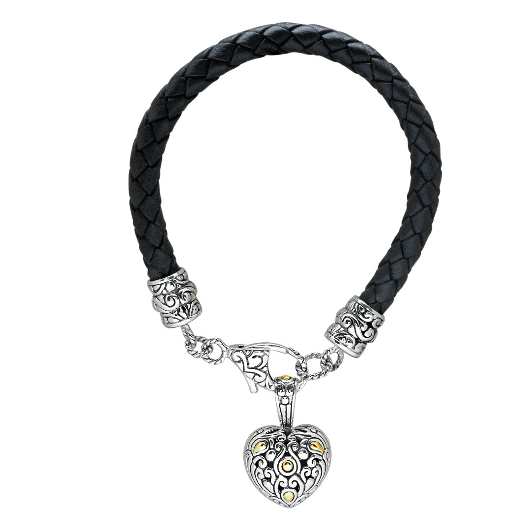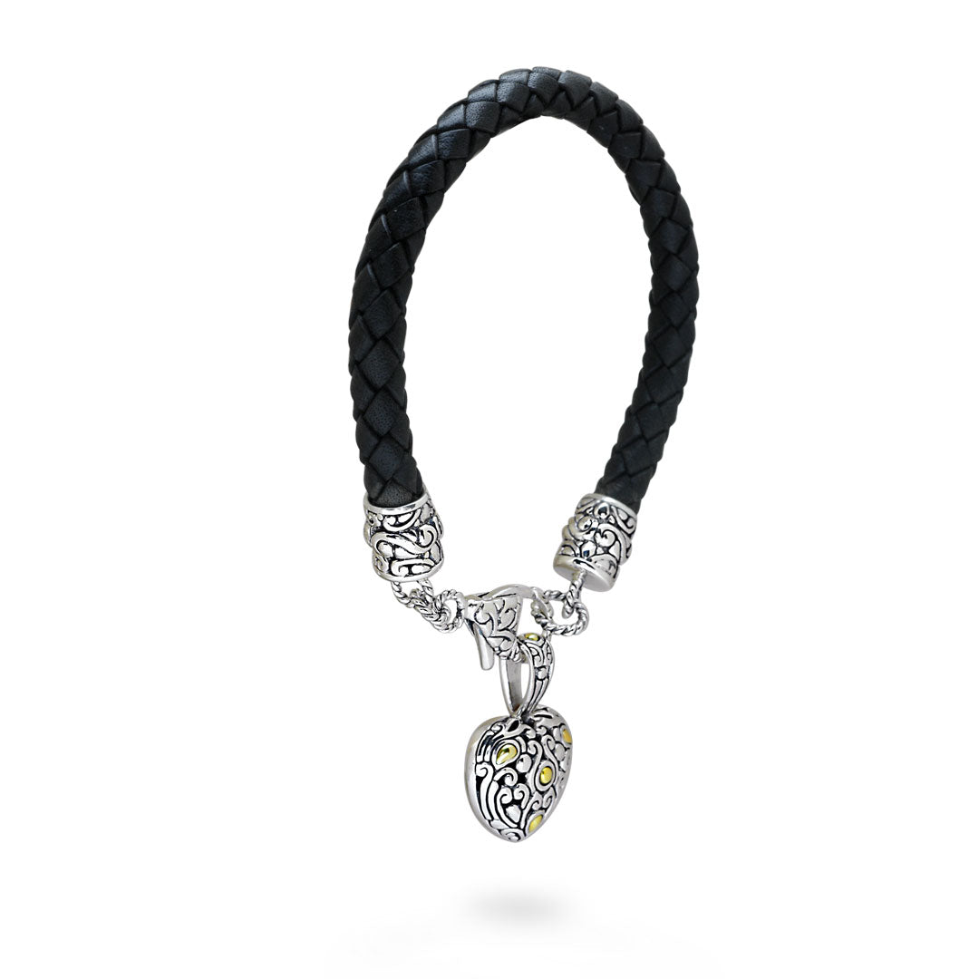Bracelet en cuir argenté et doré avec breloque cœur balinaise