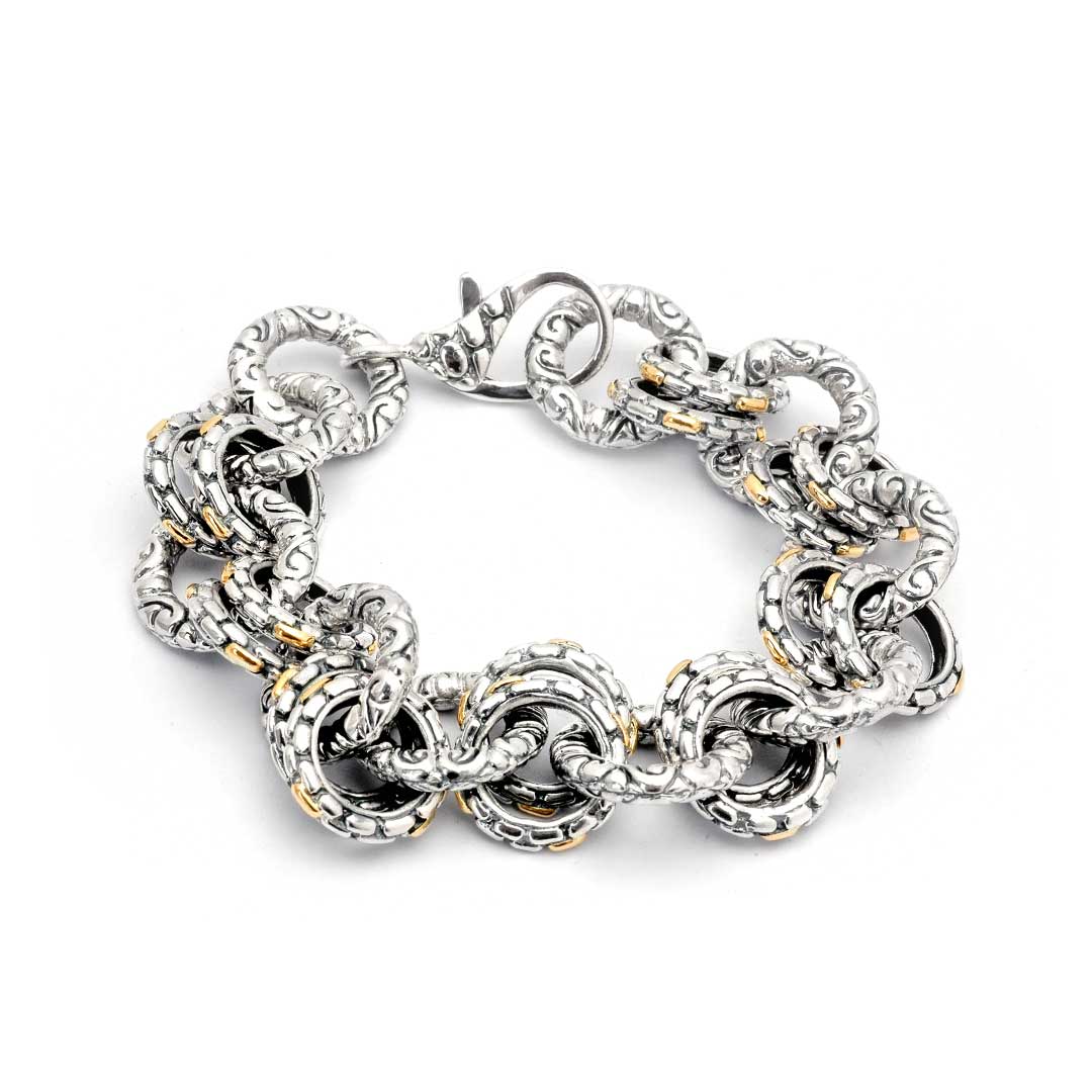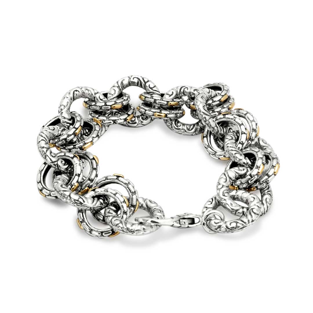 Bracelet à maillons ronds doubles en or et argent, motif géométrique