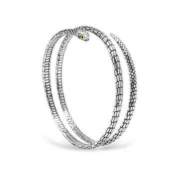 Bracelet jonc en argent enroulé autour d'un serpent, orné d'yeux en or et péridot, motif serpent mamba noir
