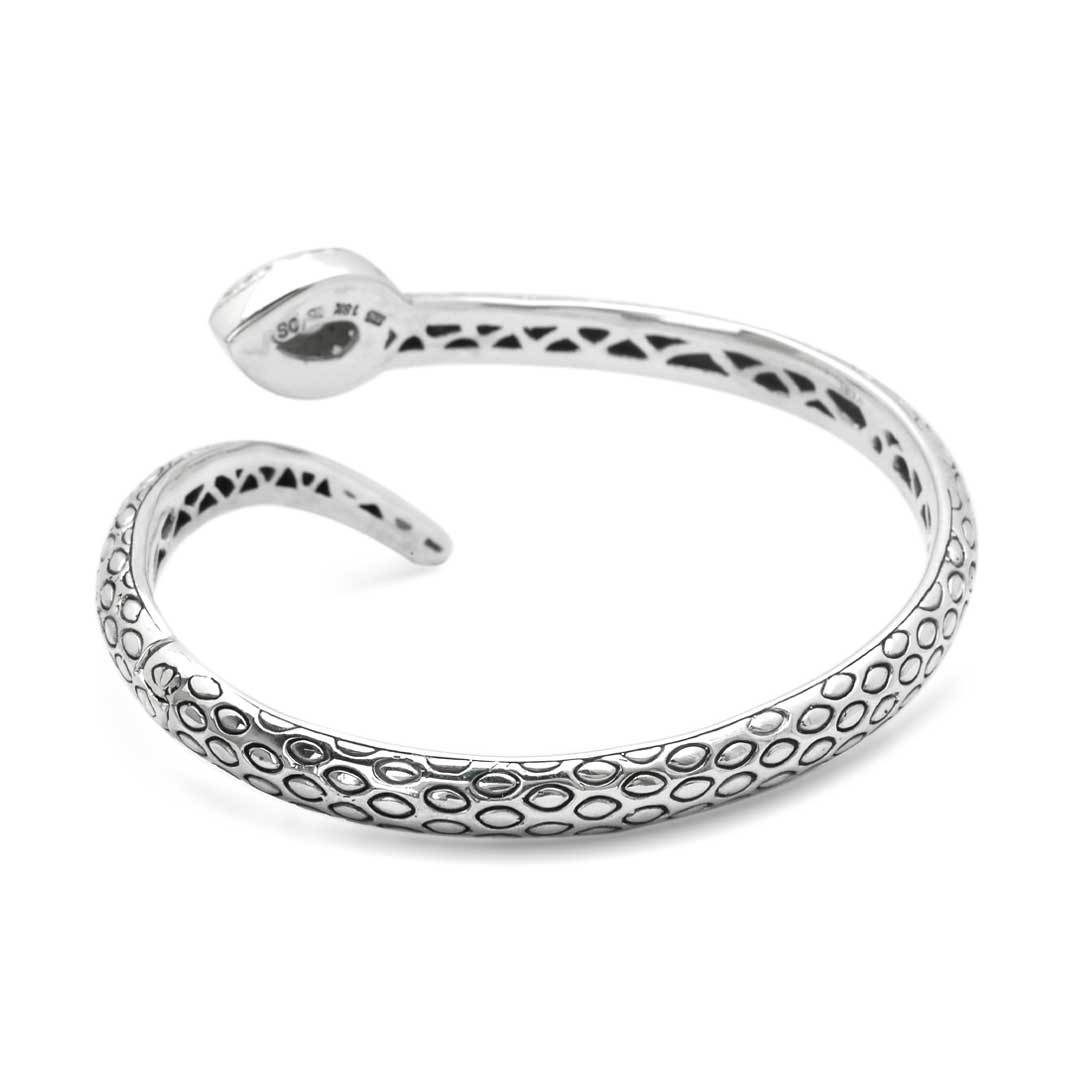 Bracelet en argent et or serti de pavé de zirconiums cubiques et de topazes bleues, motif serpent