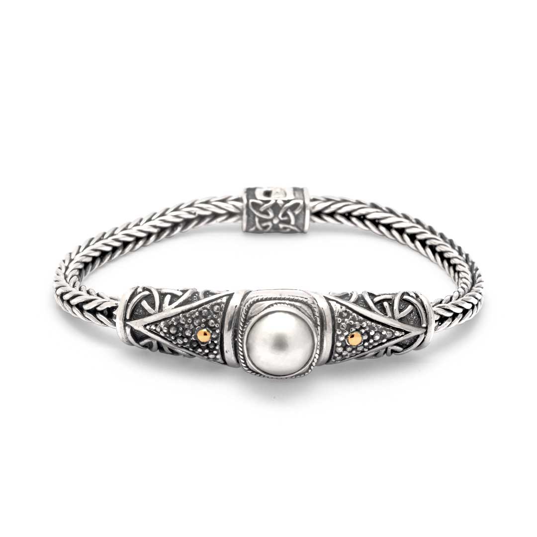 Bracelet en argent et or avec perles et ornement balinais Tulang Naga