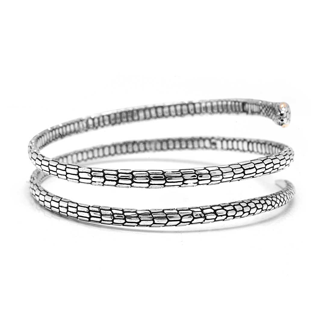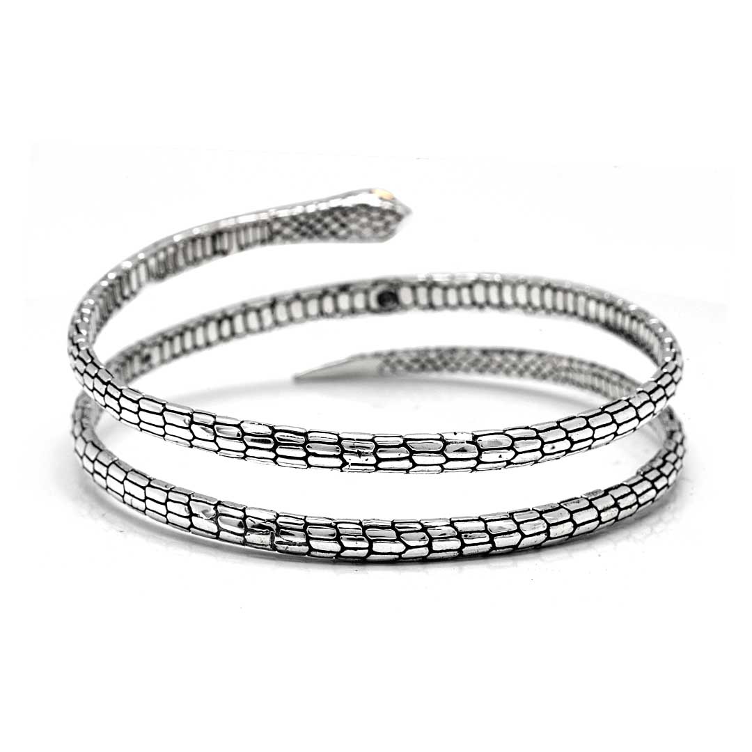 Bracelet jonc en argent enroulé autour d'un serpent à yeux dorés, motif serpent Black Mamba