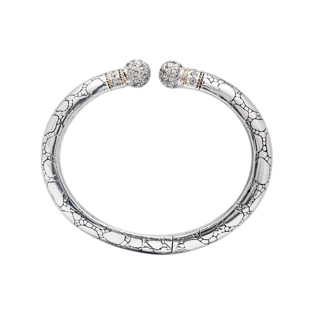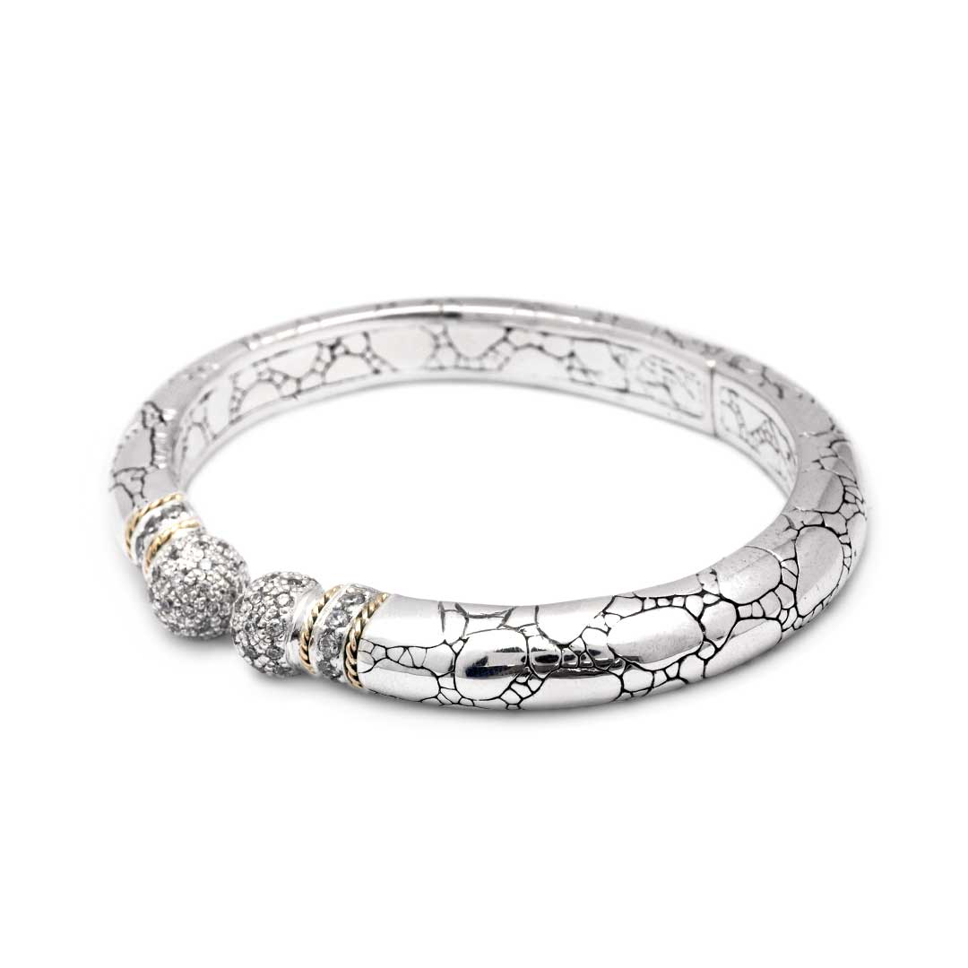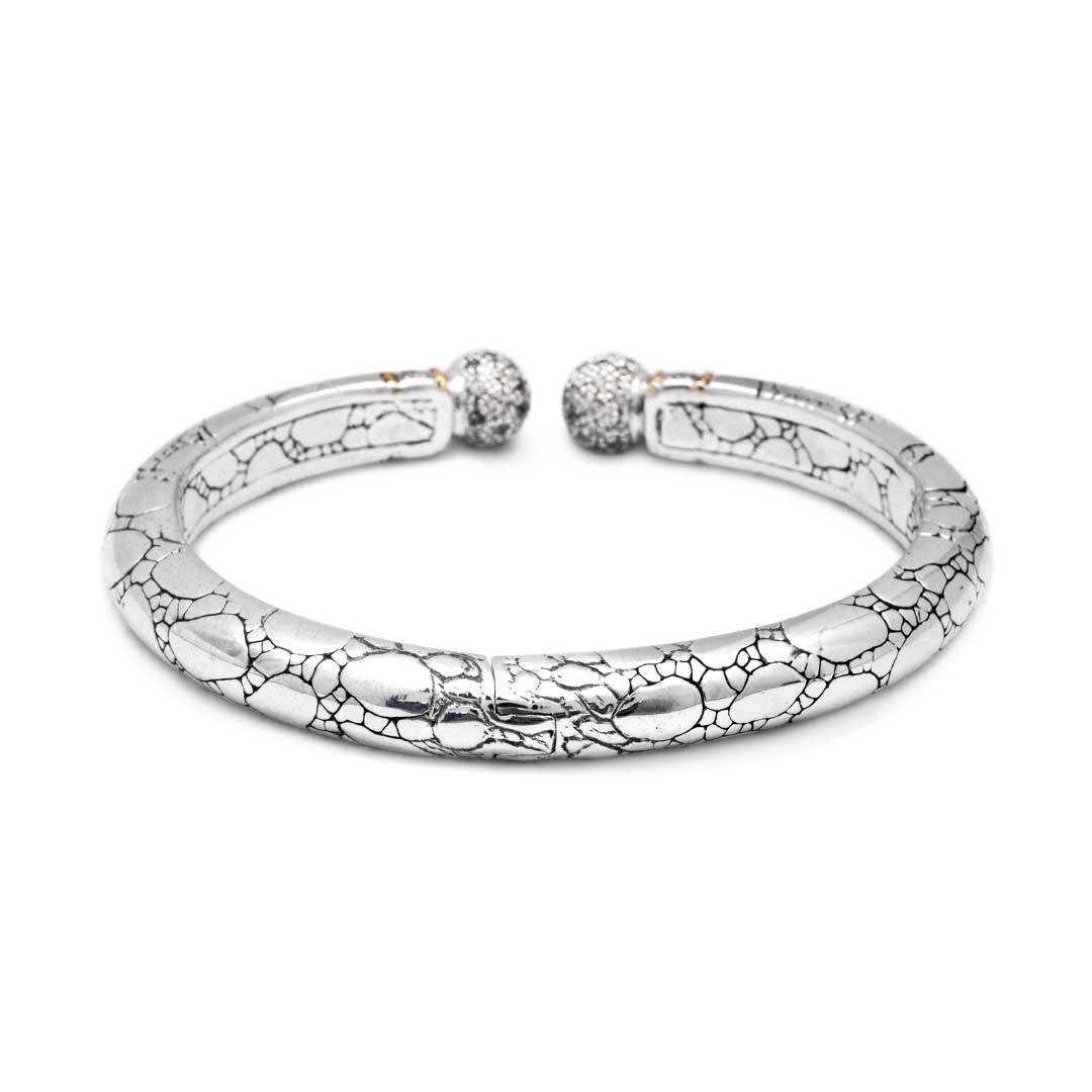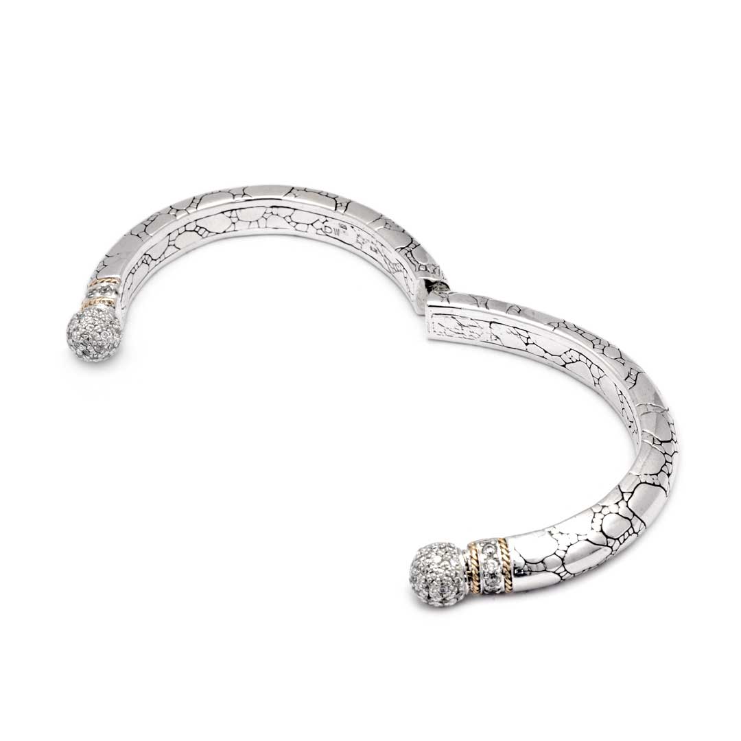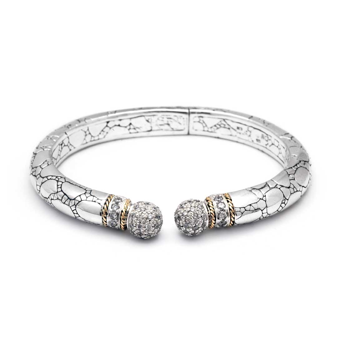 Manchette en argent et or sertie de pavé de zirconiums cubiques, motif crocodile