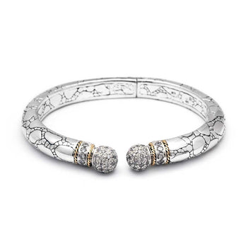 Bracelet manchette argenté et doré, pavé de zirconiums cubiques, motif crocodile