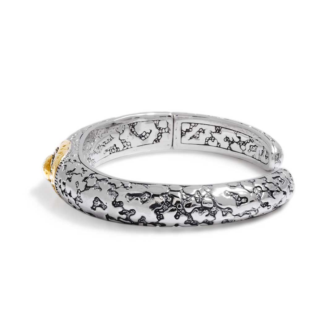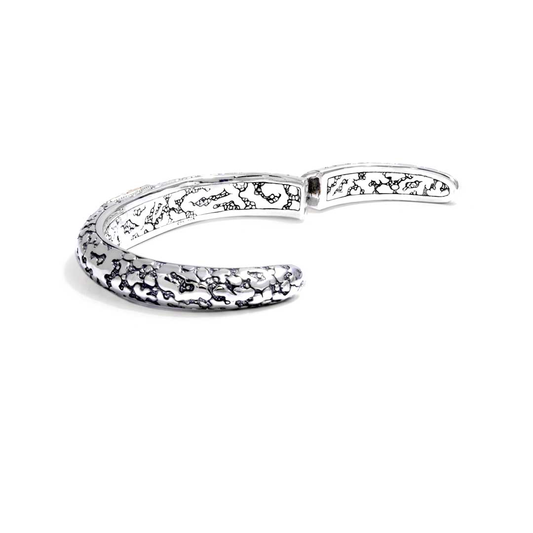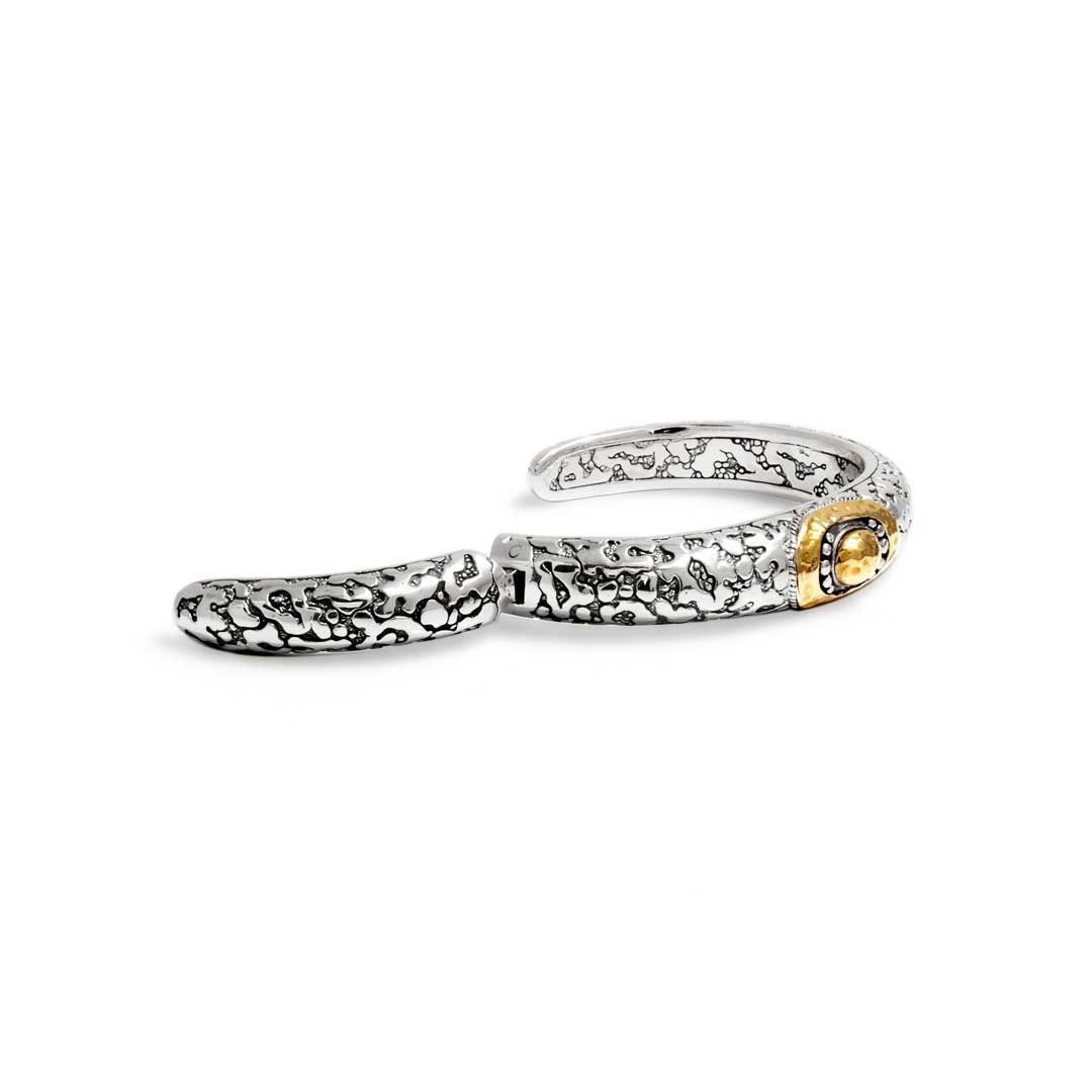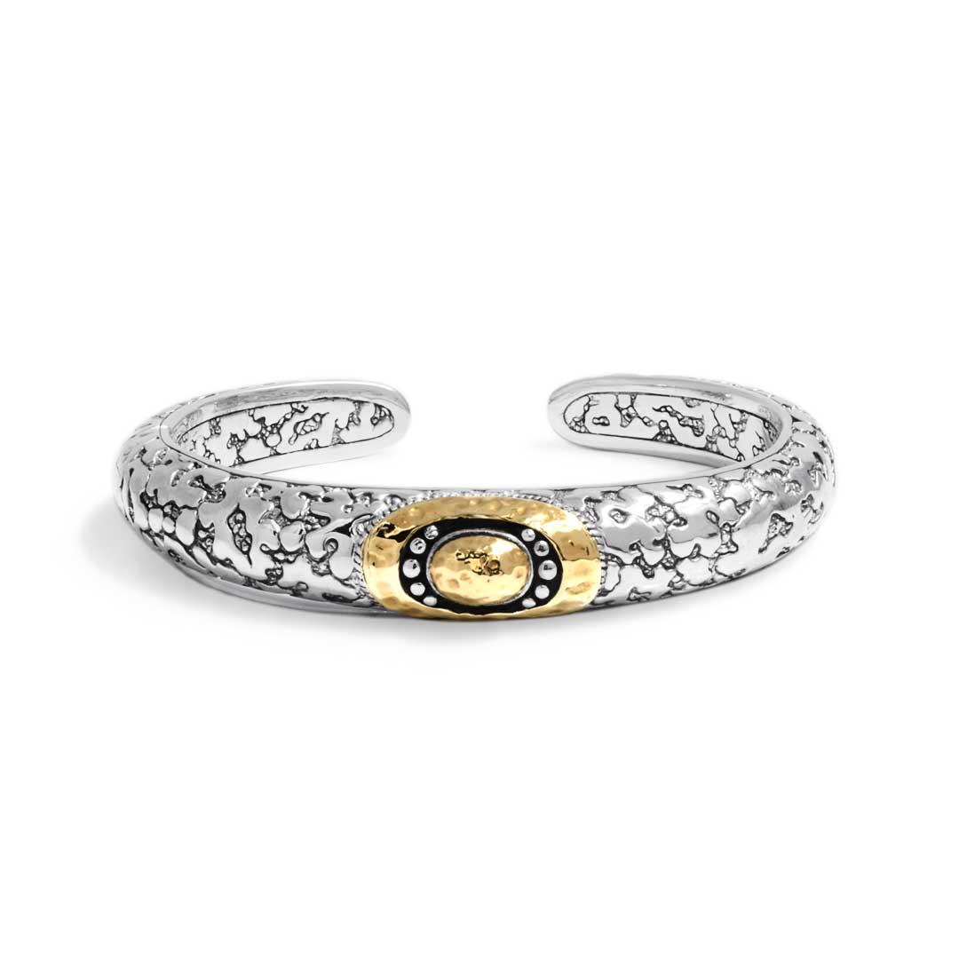 Collection de manchettes à motif texture plâtre, finition martelée argent et or 18 carats