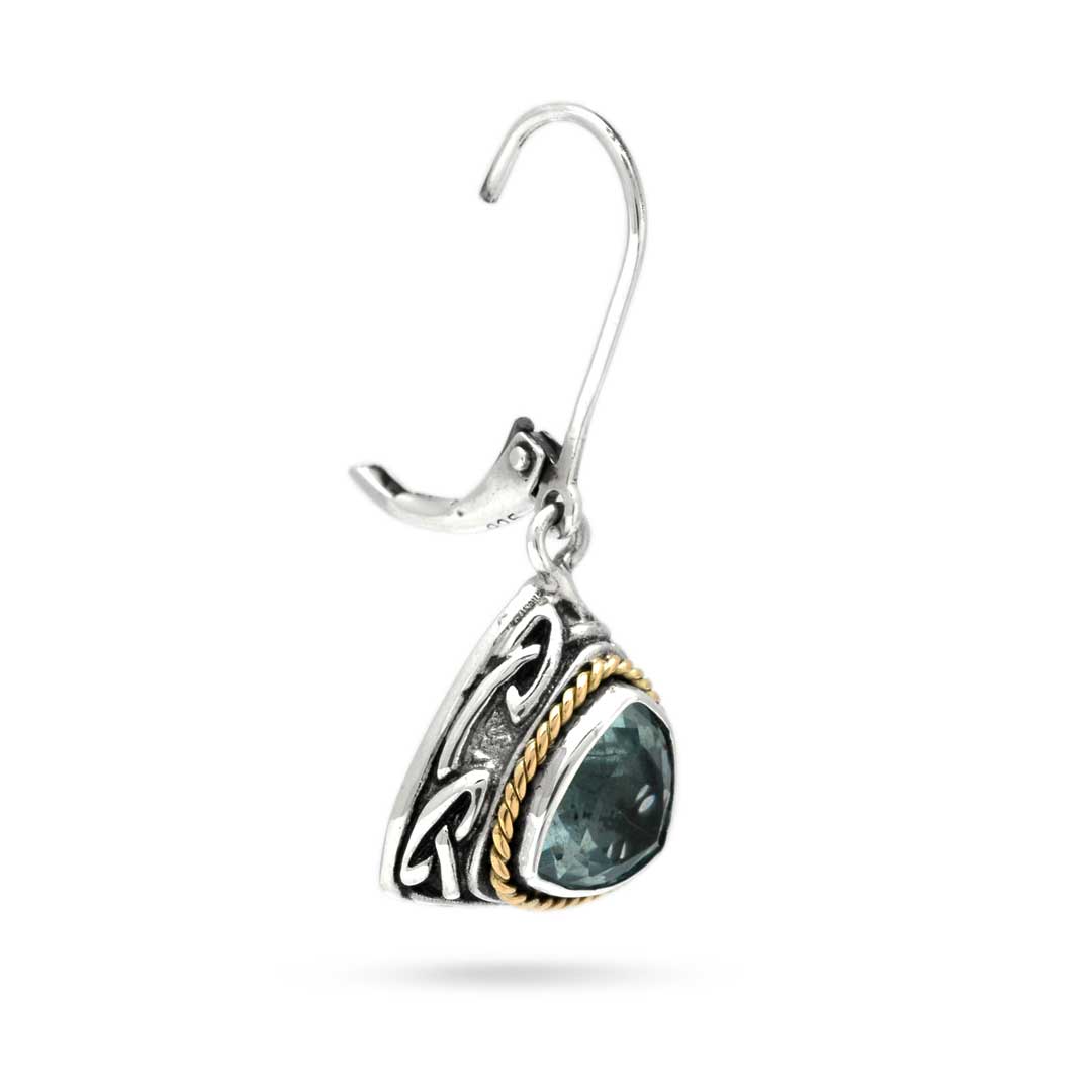 Boucle d'oreille en or et argent, motif celtique balinais, cordon en or 18 carats serti de topazes bleues Sky 8 trillions, fermoir à levier