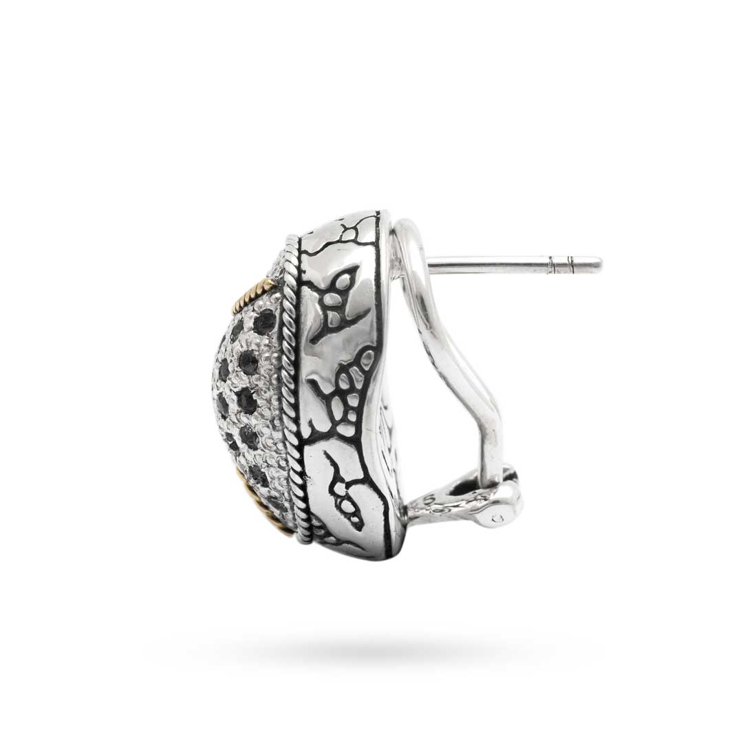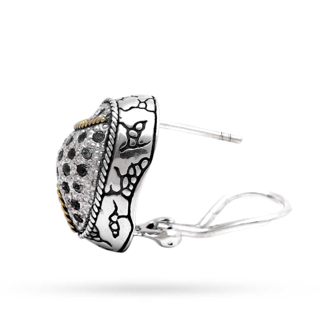 Boucles d'oreilles argentées et dorées à effet plâtre, fermoir oméga