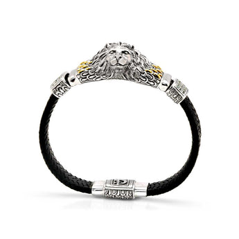 Bracelet en cuir doré et argenté à tête de lion, cordon de 11 mm