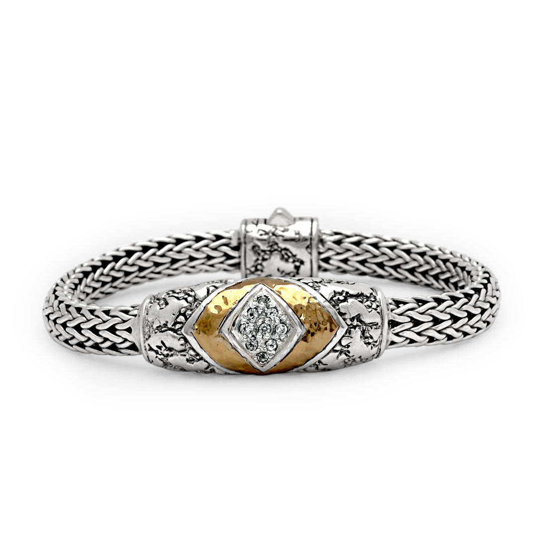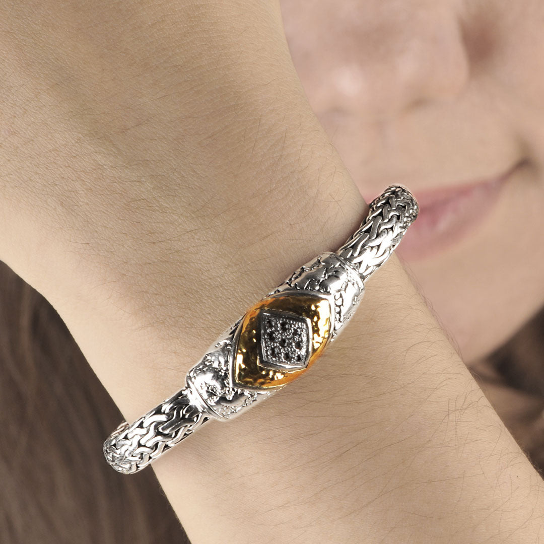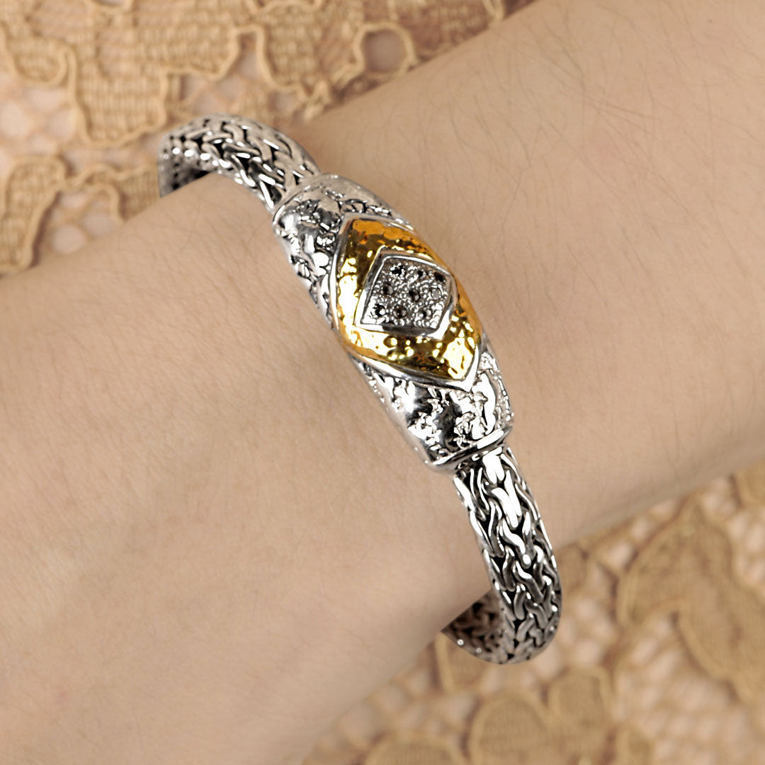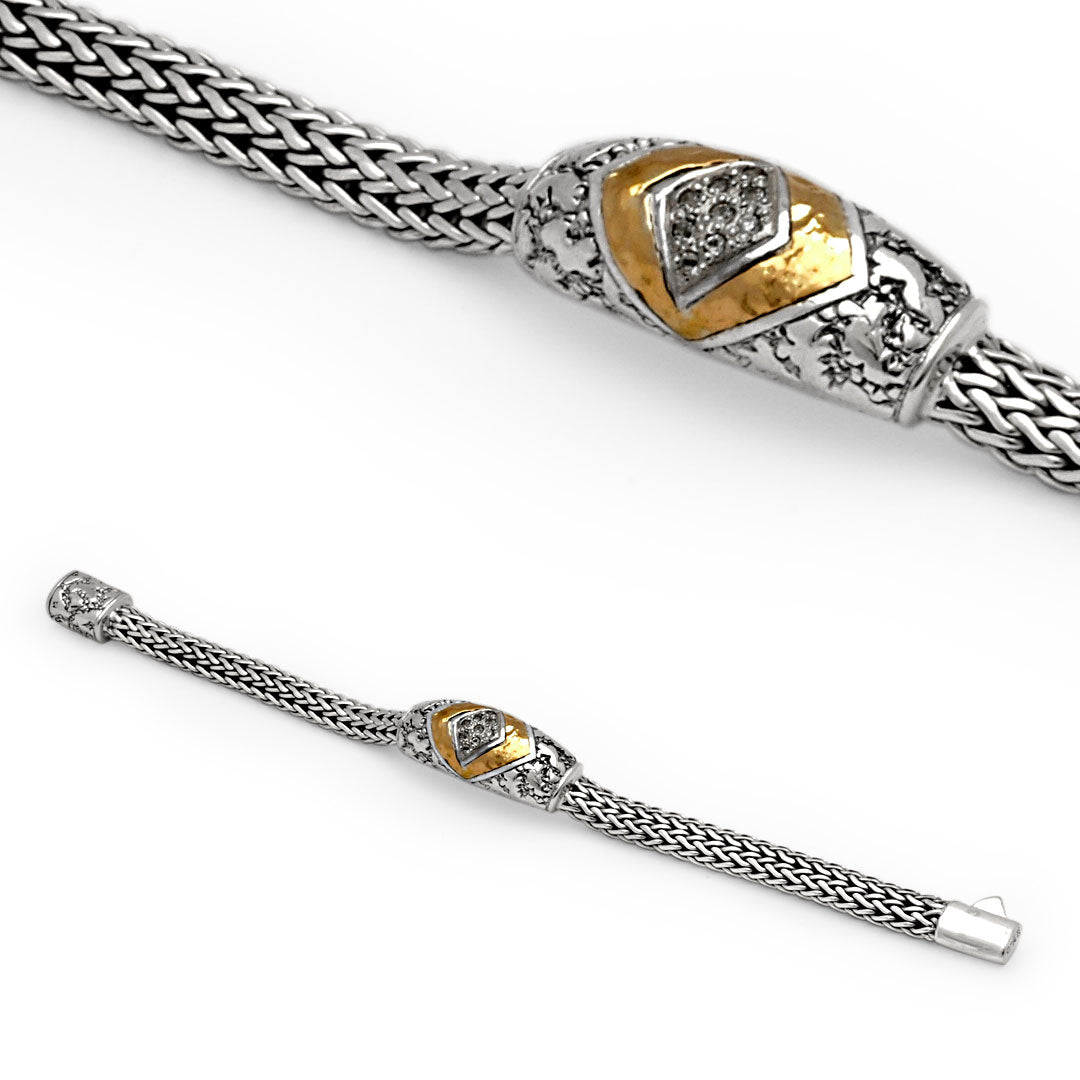Bracelet en or et argent, texture plâtre, or 18 carats, Tulang Naga 5x7