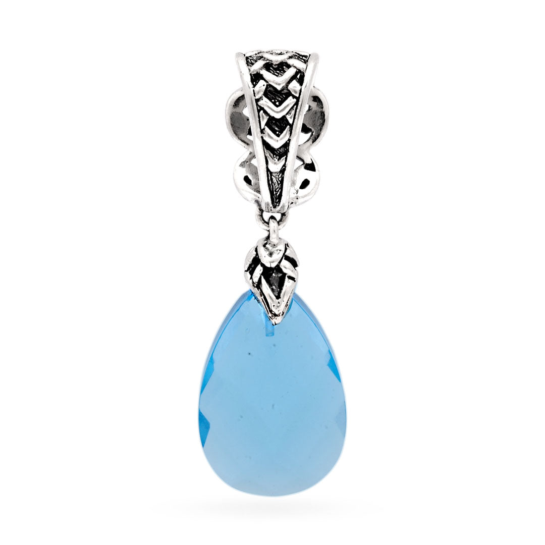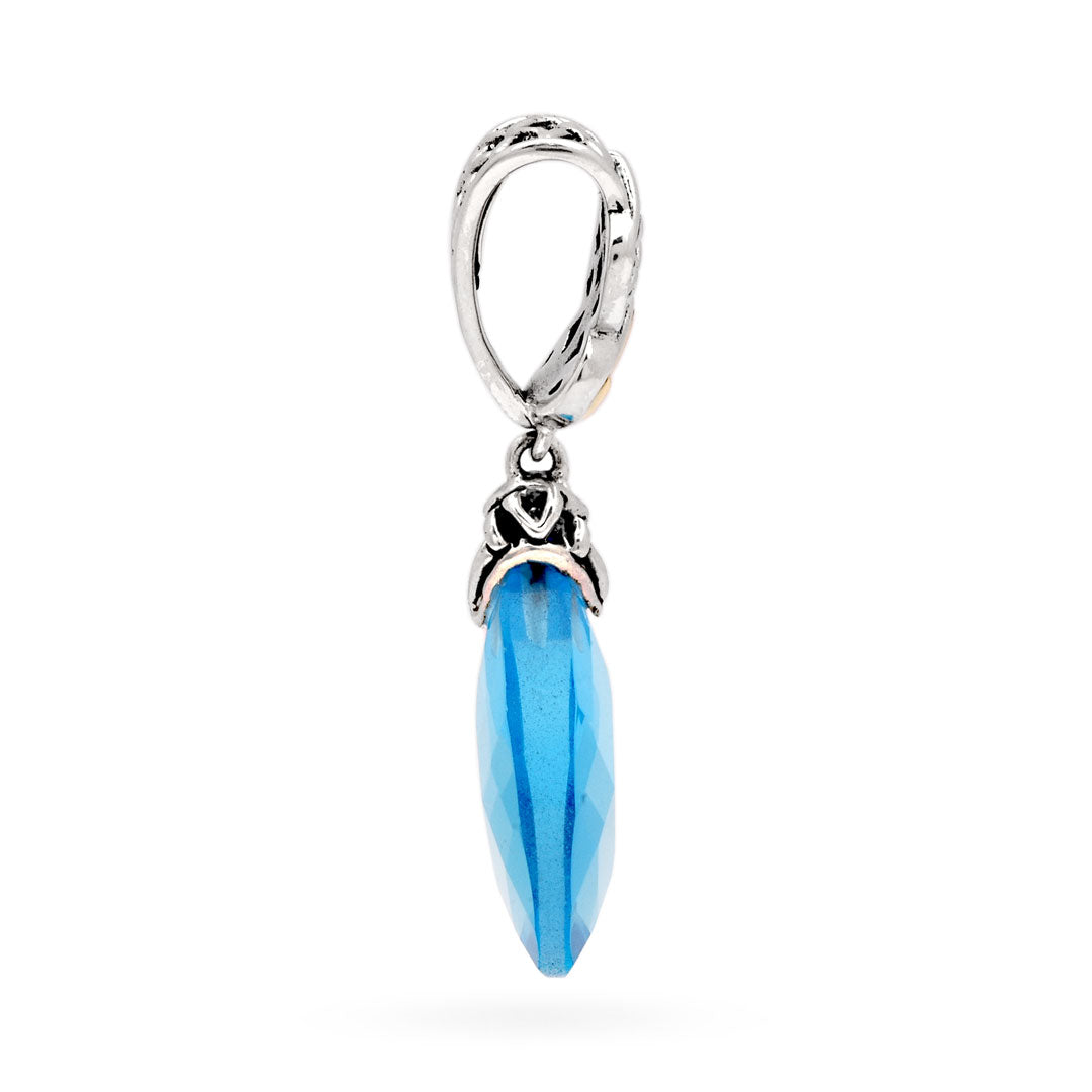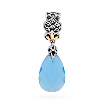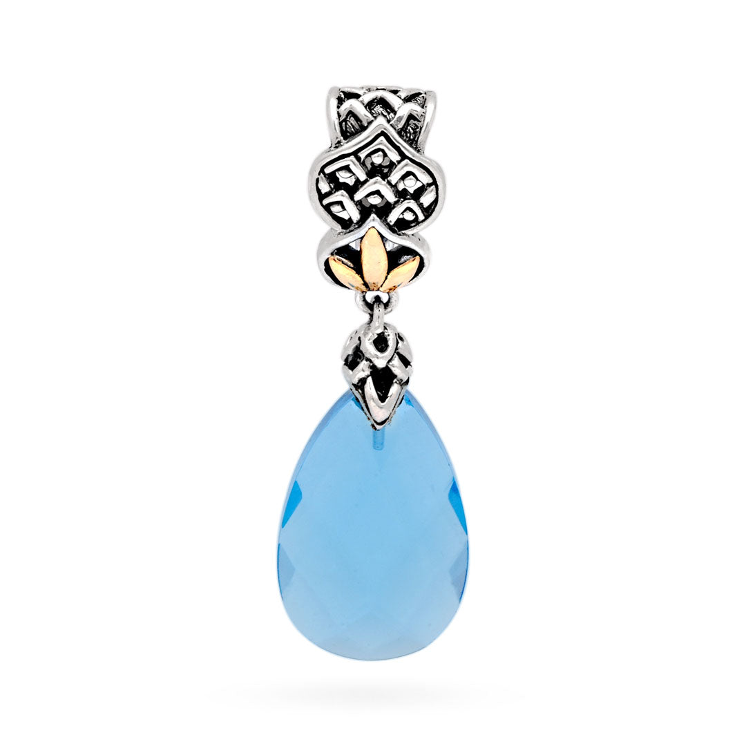 Pendentif en or et argent, goutte de quartz bleu 15 x 10 mm