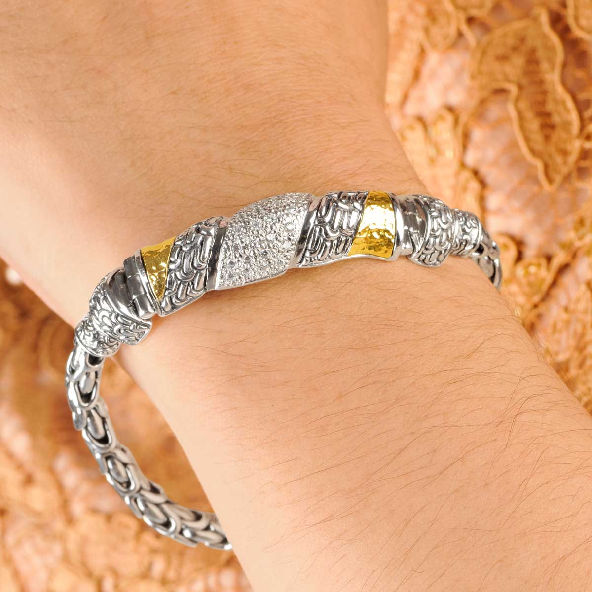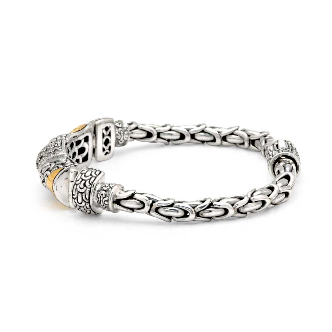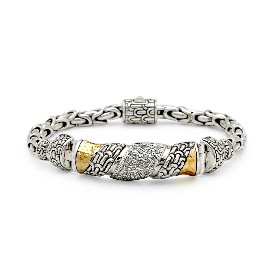 Bracelet en or et argent, chaîne Sisik Naga, pavé de zirconiums blancs
