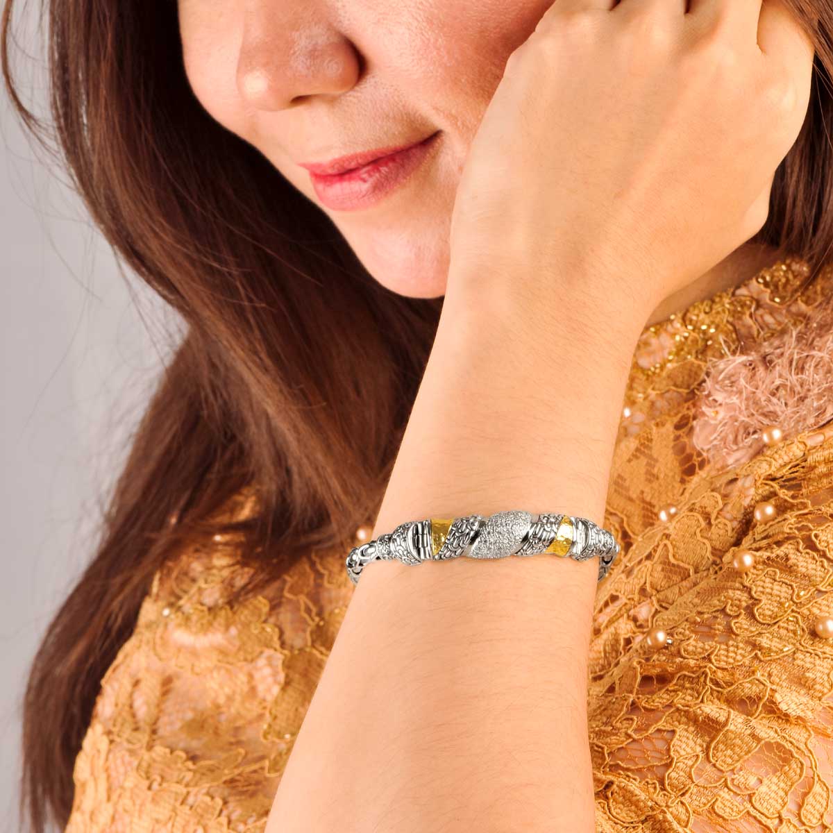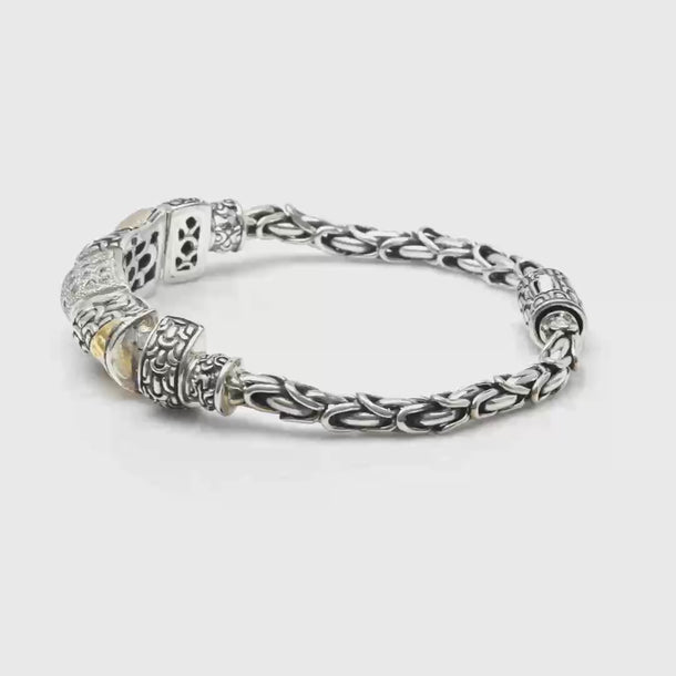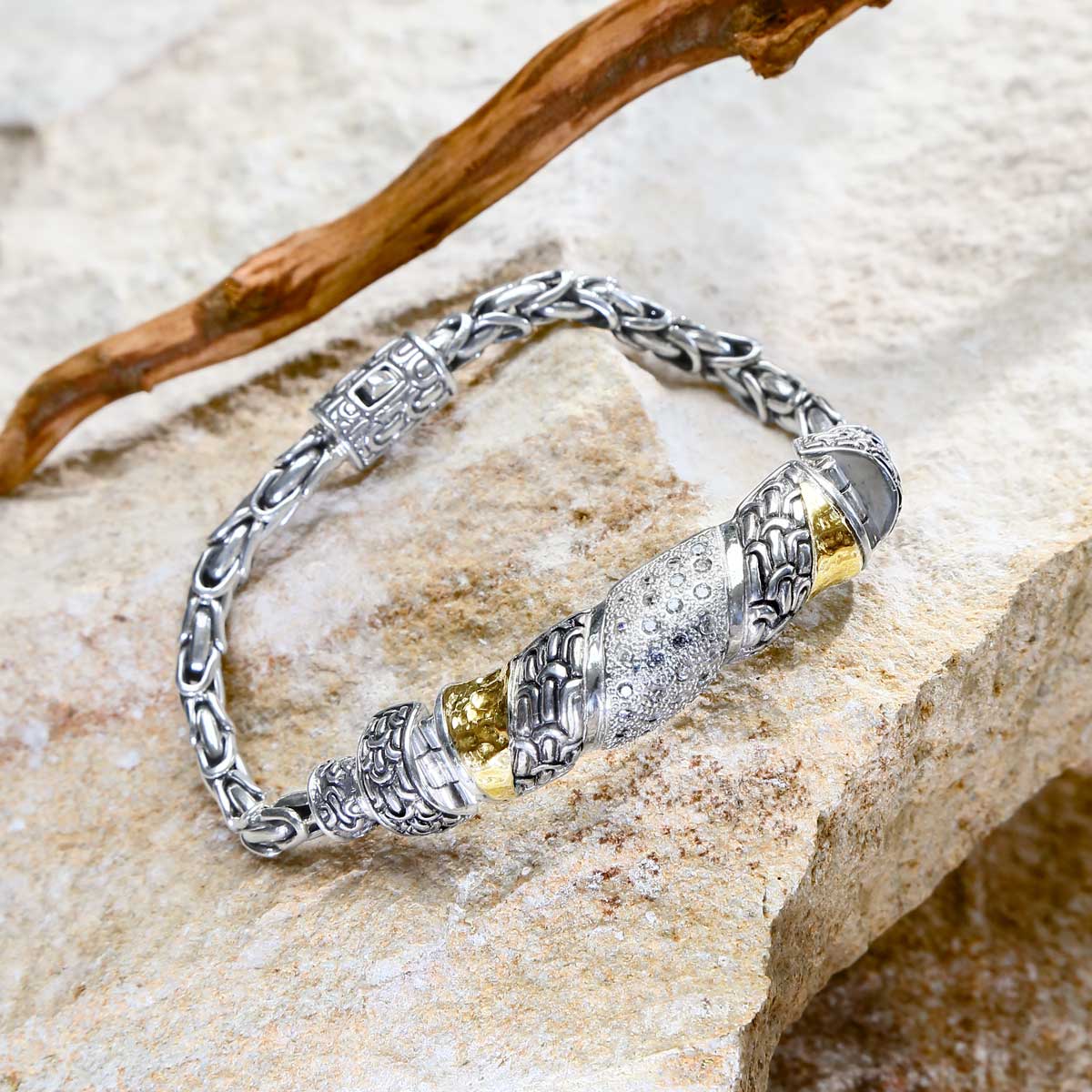 Bracelet en or et argent, chaîne Sisik Naga, pavé de zirconiums blancs