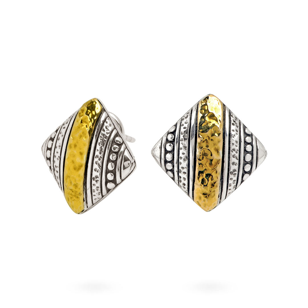 Boucle d'oreille en or et argent, ornée de détails en or 18 carats, fermoir oméga