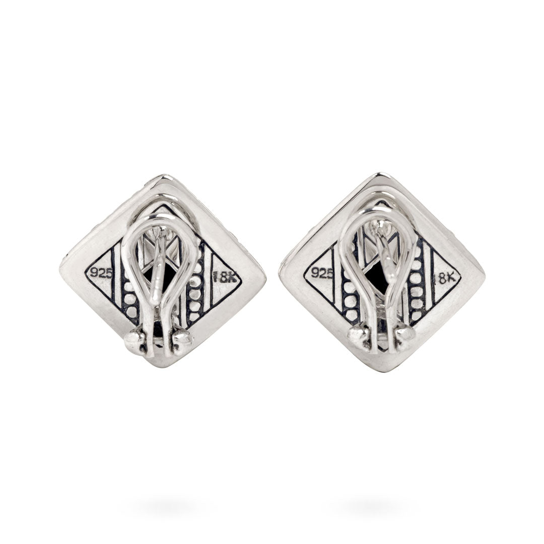 Boucle d'oreille en or et argent, fermoir oméga en or 18 carats