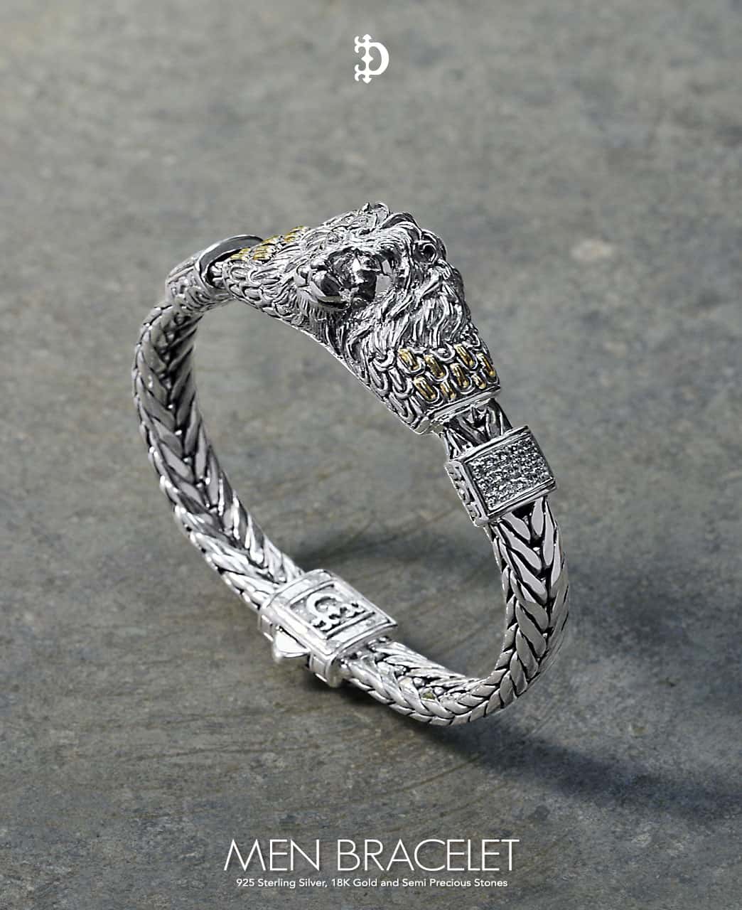 Gold & Silver bracelet, Lion head with sisik naga motif, Chain tulang naga square 9x4 mm, spring lock