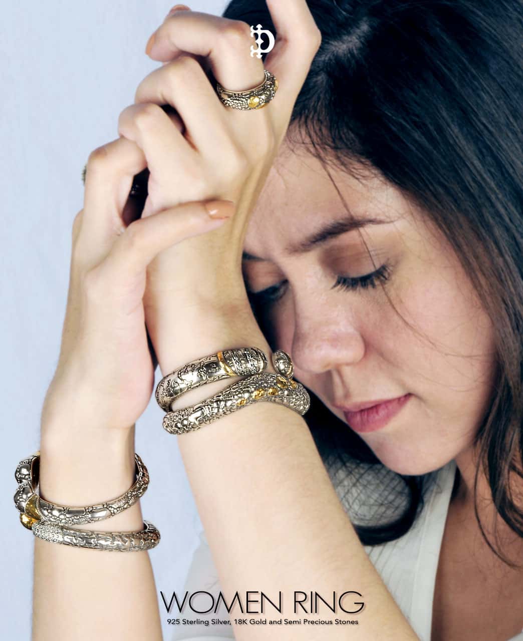 Bangle Gold & Silver, Crocodile Collection. Small size