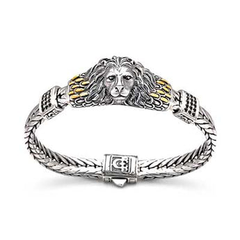 Gold & Silver Bracelet Lion Head, Black Sapphire, Tulang Naga 9x4