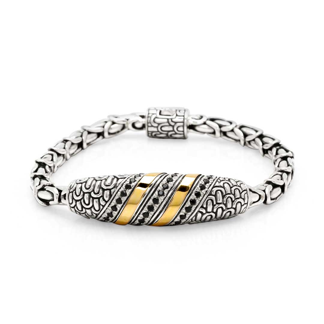 Gold & Silver Bracelet, Sisik Naga Collection, Black Sapphire Pave