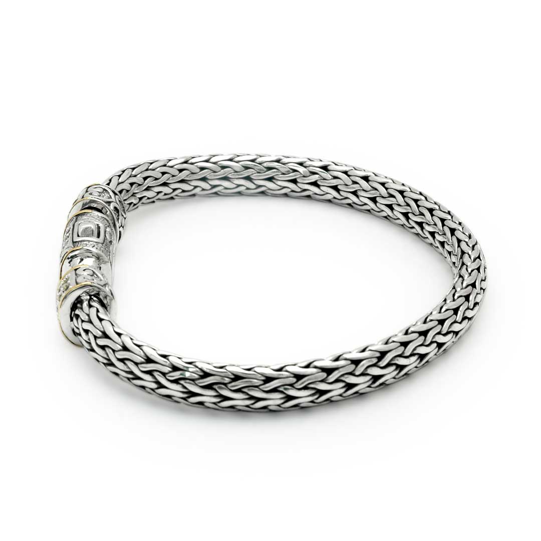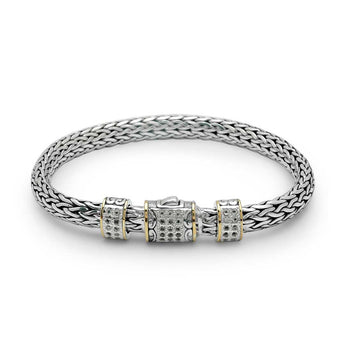 Gold & Silver Bracelet Tulang Naga, Dragon Bone 5x7, White Topaz Pave
