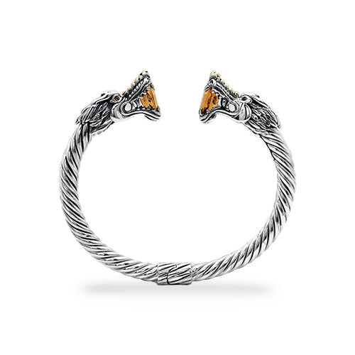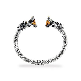 Gold & Silver Cable Bangle Dragon Head, Citrine Eyes
