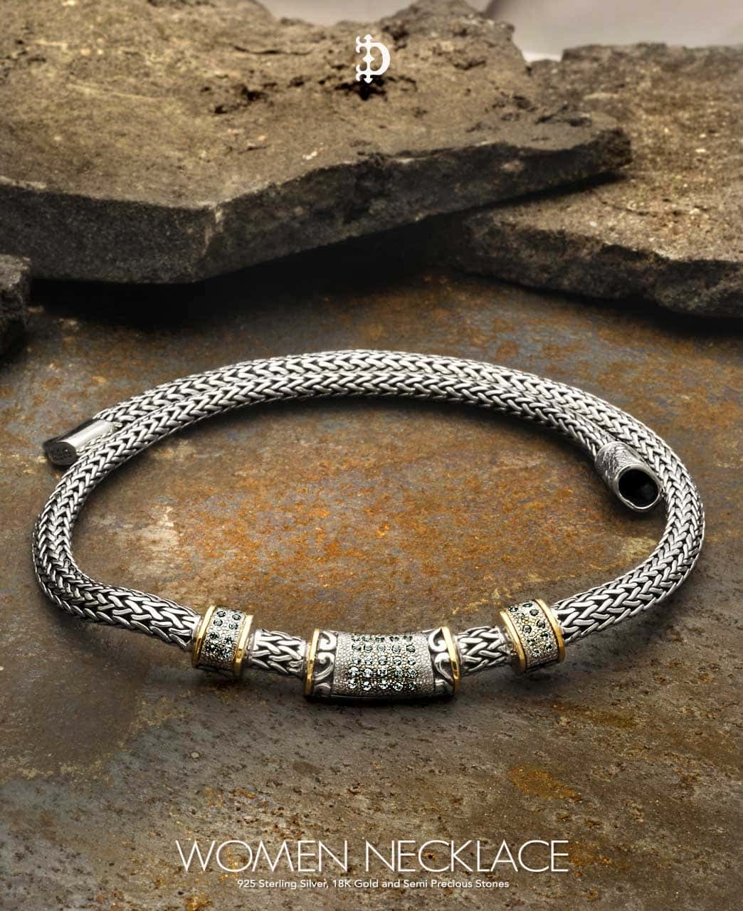 Gold & Silver necklace, alphabet collection, letter D, tulang naga chain 2.5mm with bali lobster clasp