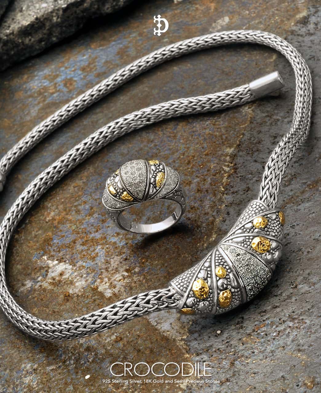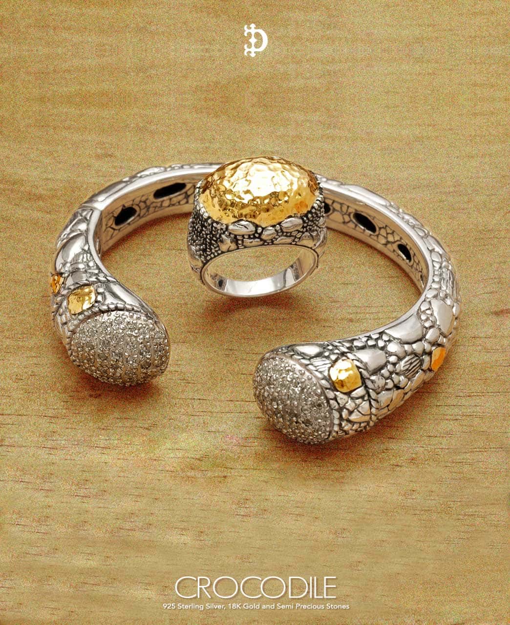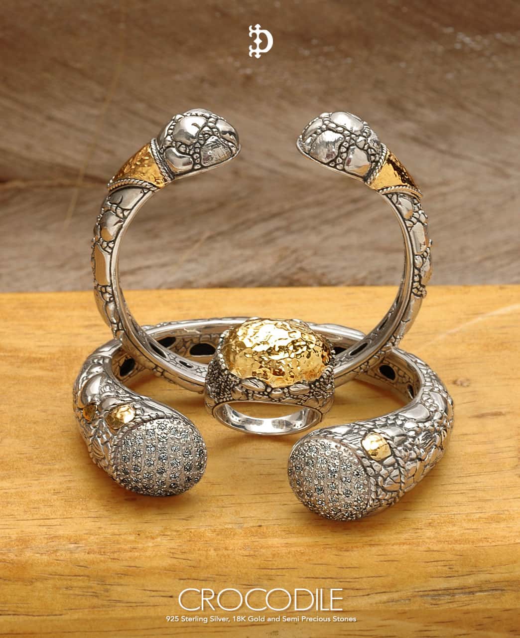 Bangle Gold & Silver, Crocodile Collection. Small size
