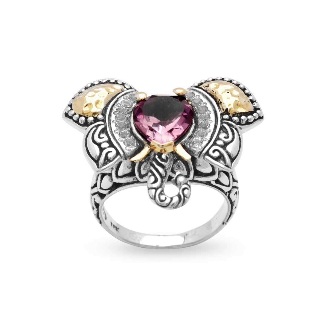 Gold & Silver Ring, elephant collection, Amethyst pear shape with white topaz pave